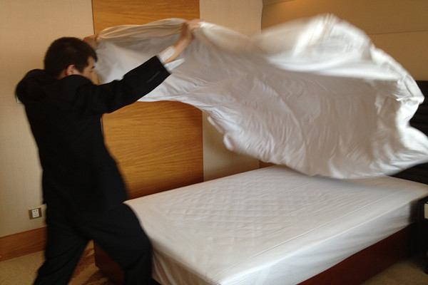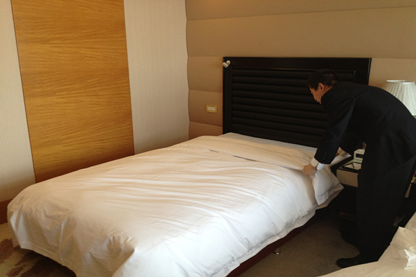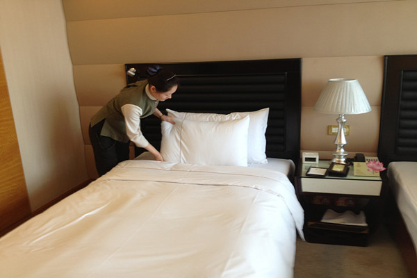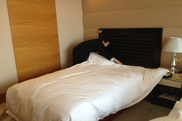 2013年4月11日14時(shí),第三屆“勞動(dòng)之星”職業(yè)技能競(jìng)賽實(shí)踐操作由江泉城承辦的中式做房在江泉城客房部7樓正式啟動(dòng)。本次比賽共計(jì)20名參賽選手,集團(tuán)公司對(duì)比賽全程進(jìn)行了現(xiàn)場(chǎng)監(jiān)督。繼今日的比賽項(xiàng)目之后其他工種的比賽也將在近期陸續(xù)展開。