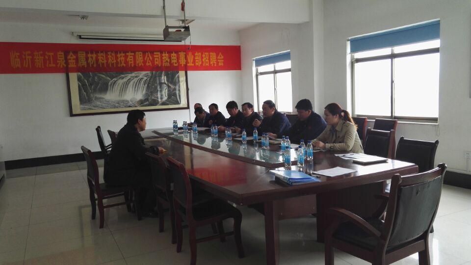 2016315日臨沂新江泉金屬材料科技有限公司熱電事業(yè)部召開招聘會,此次招聘會由熱電事業(yè)部主辦集團(tuán)人力資源部協(xié)助舉辦。